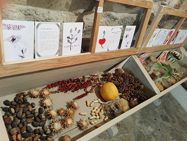 Des photos exposées, des histoires à lire et plein de plantes, graines, éléments naturels récoltés dans les alentour pour composer le mandala collectif qu'on a réalisé avec la participation des qui en avez envie!